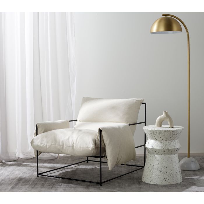 This Klein Chair is both stylish and practical. It displays a white iron frame with fabric upholstery – the upholstery has a luxurious grey appearance, making it a visual statement piece. Its modern and clean shape will complement both classic and contemporary interiors alike. Place this chair in a large living area for sophistication and comfort. Enrich your space with this beautiful Klein Chair.